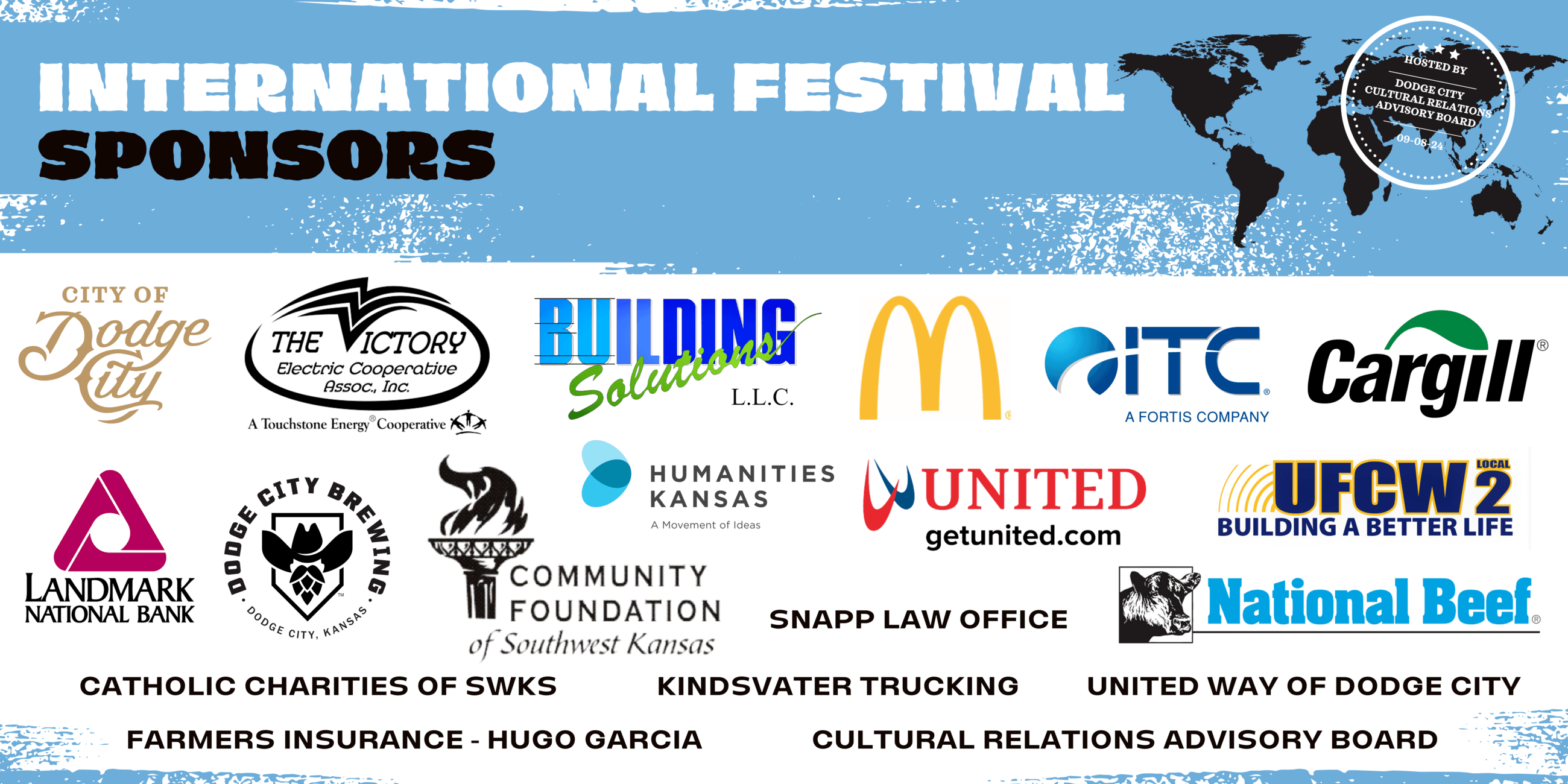 Catholic Charities of Southwest Kansas, Cultural Relations Advisory Board, Farmers Insurance - Hugo Garcia, Kindsvater Trucking, Snapp Law Office, United Way of Dodge City